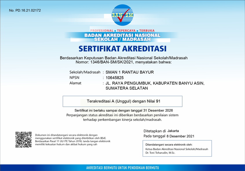 SELAMAT DATANG DI PORTAL RESMI SMA NEGERI 1 RANTAU BAYUR